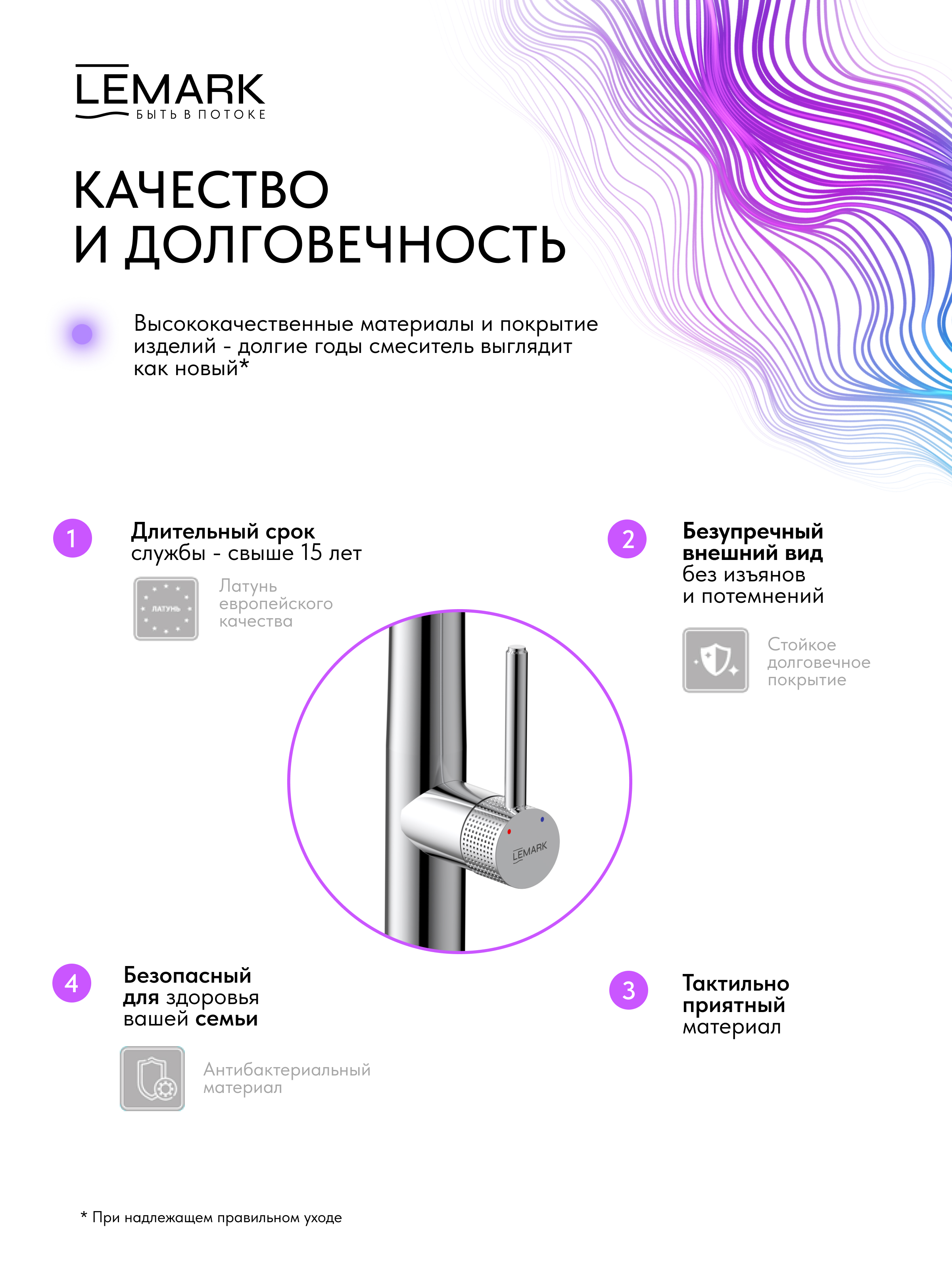 Срок службы смесителя – 15 лет / аксессуаров - 5 лет