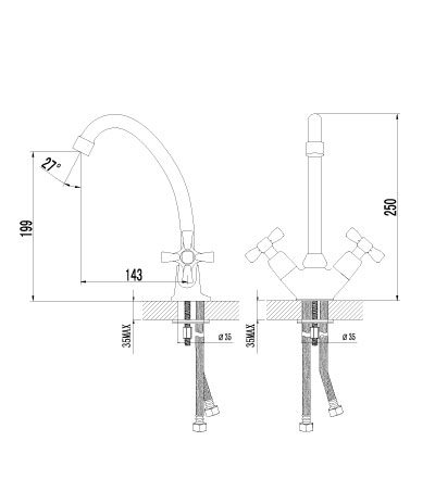 - Керамическая кран-букса практически бесшумно смешивает холодный и горячий потоки. Два вентиля оригинальной формы служат для регулирования температуры и напора подаваемой воды.