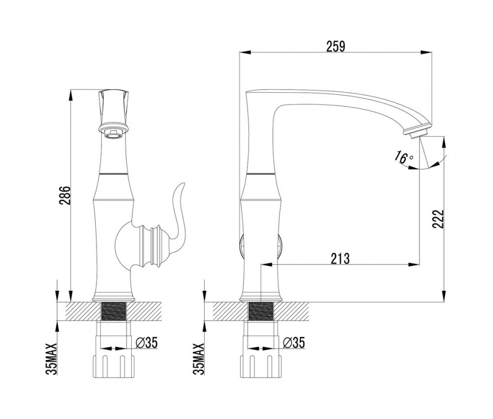 - Керамический картридж 35 мм смешивает потоки холодной и горячей воды до установленной температуры и обеспечивает ее подачу и герметичное перекрытие без протечек.