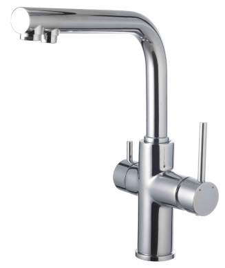 - Управление смесителем происходит с помощью двух металлических рукояток: малая – для фильтра, большая – для водопроводной воды.