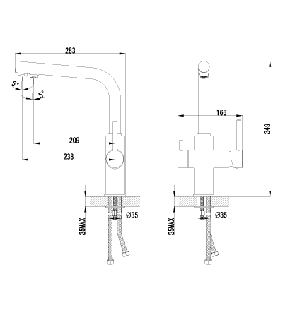 - Поворотный излив с двумя аэраторами не мешает при мытье посуды и уборке раковины, обеспечивает мягкую струю.
