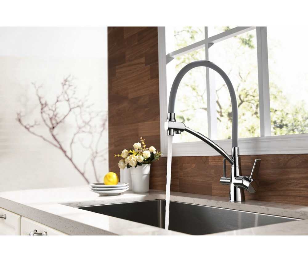 Смеситель для кухни Lemark Comfort с подключением фильтра, с серым изливом (LM3071C-Gray)