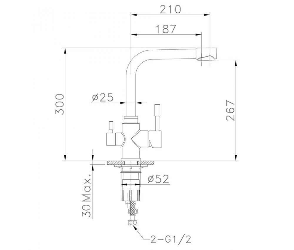 Состав поставки: смеситель, дополнительный излив для фильтра, аэратор, гибкая подводка