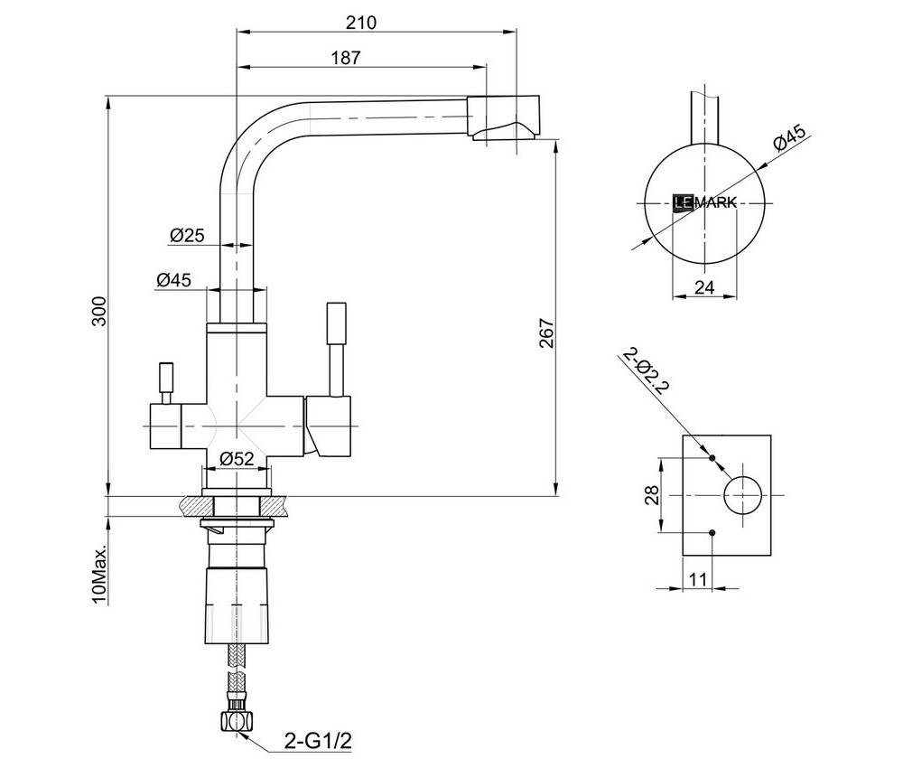 - Смеситель оснащен аэратором, который комбинирован для водопроводной и питьевой воды Neoperl