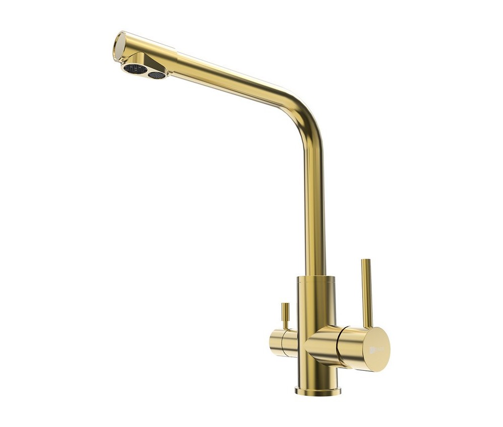 - Смеситель имеет керамический картридж 35 мм с функцией включения питьевой воды и переходник для подключения шланга от фильтра с питьевой водой