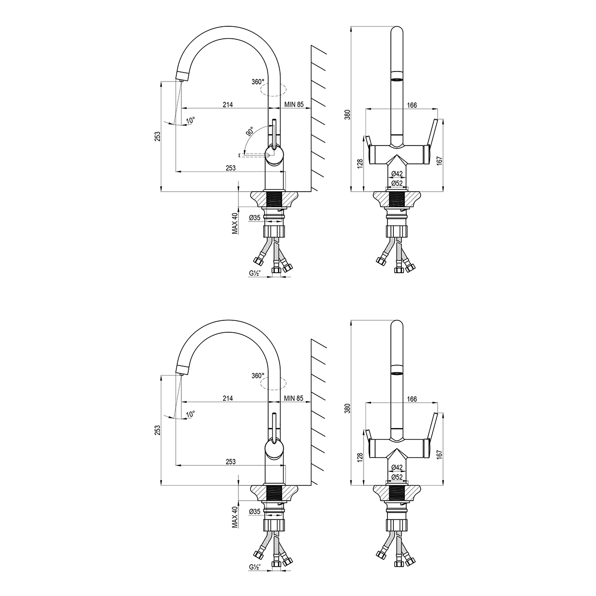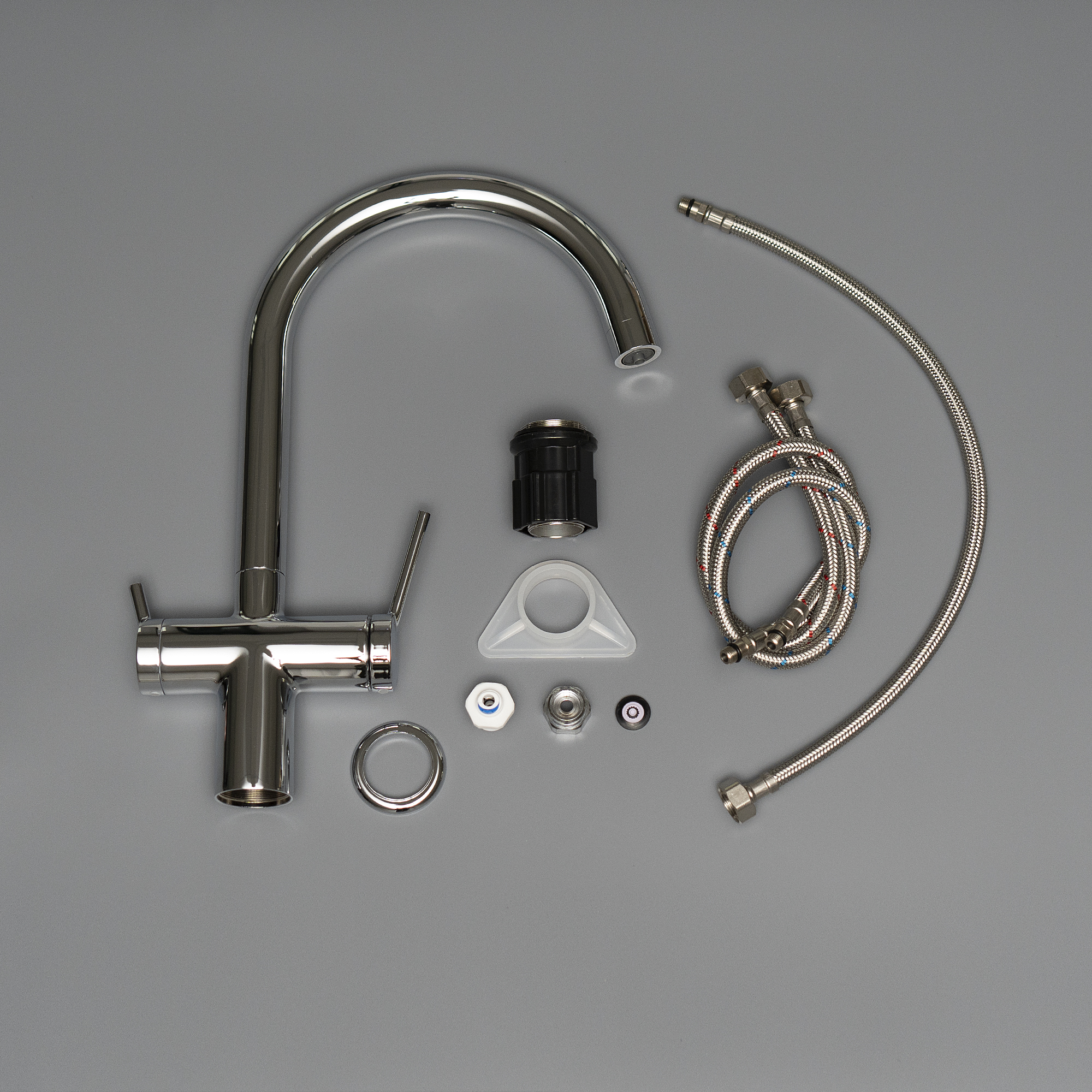 Смеситель для кухни с подключением к фильтру питьевой воды, высота излива 25,3 см, длина 21,4 см, латунь/хром
