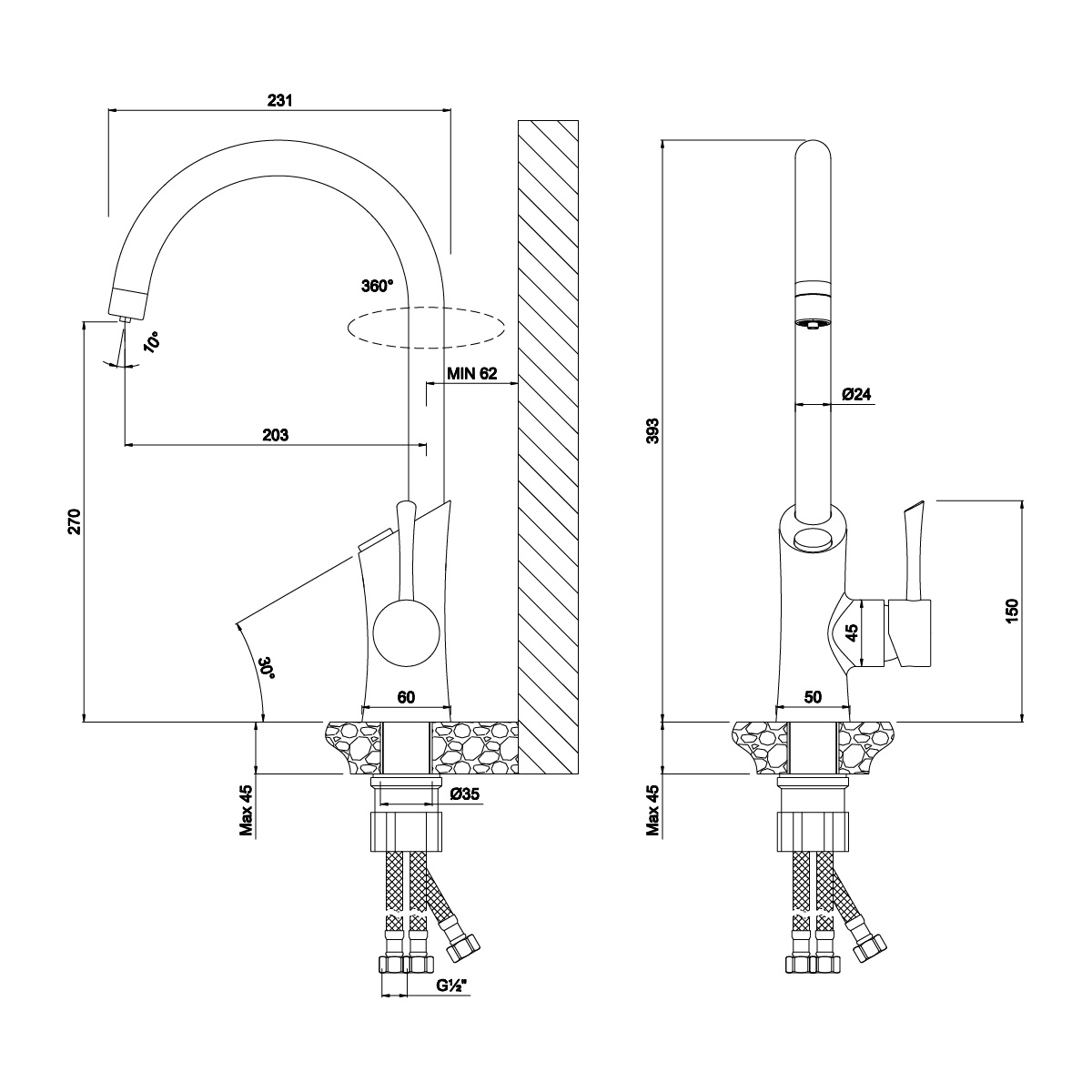 • Все необходимое для подключения к крану или смесителю в комплекте.