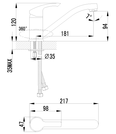- Встроенный аэратор предотвращает разбрызгивание воды и увеличивает зону комфортного использования.
