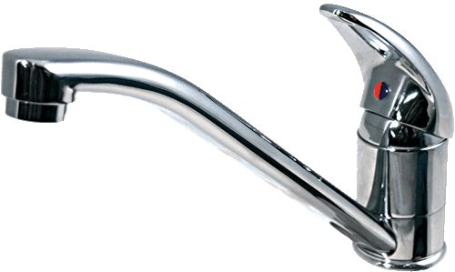 Смеситель для кухни MELODIA Argus MDV 40410 изготовлен из хромированной латуни, с поворотным изливом, смешивание воды происходит с помощью керамического картриджа диаметром 40 мм, без гибкой подводки.