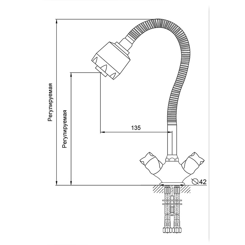 Кухонный смеситель классического дизайна с гибким поворотным изливом и лейкой-отличное решение для вашей кухни