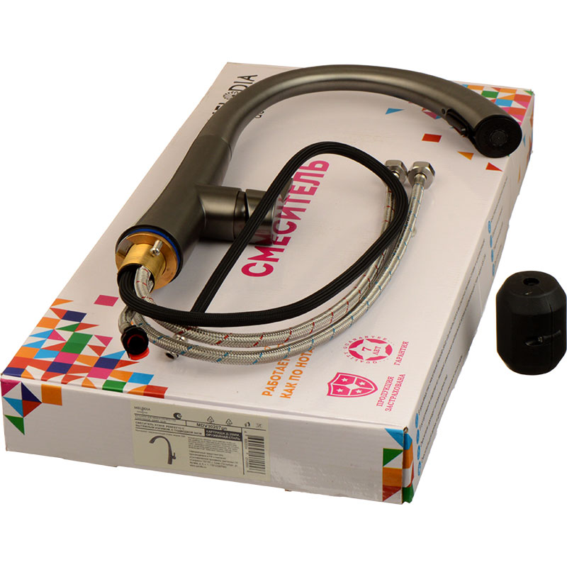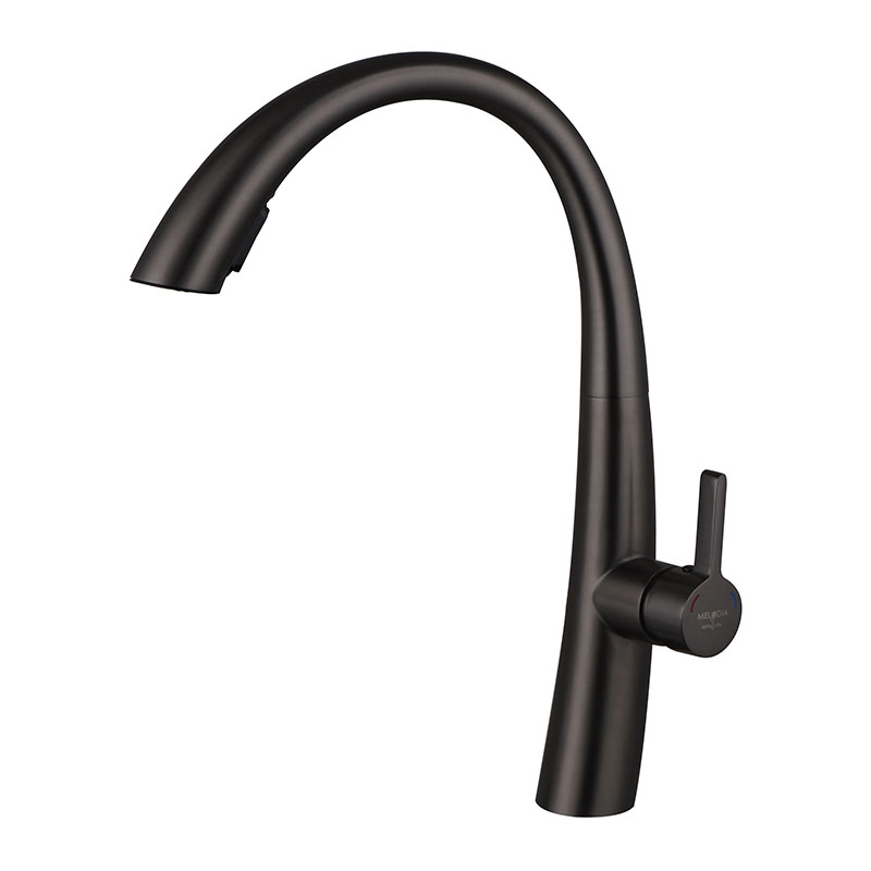 Смеситель для кухни Melodia della vita Perfetto с выдвижным изливом, оружейная сталь (MDV30207gn)