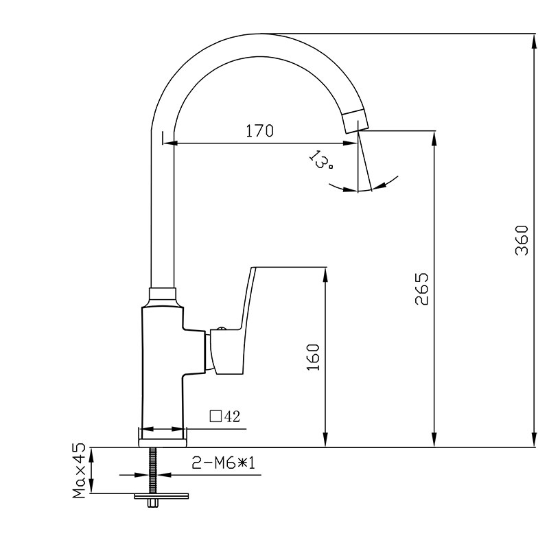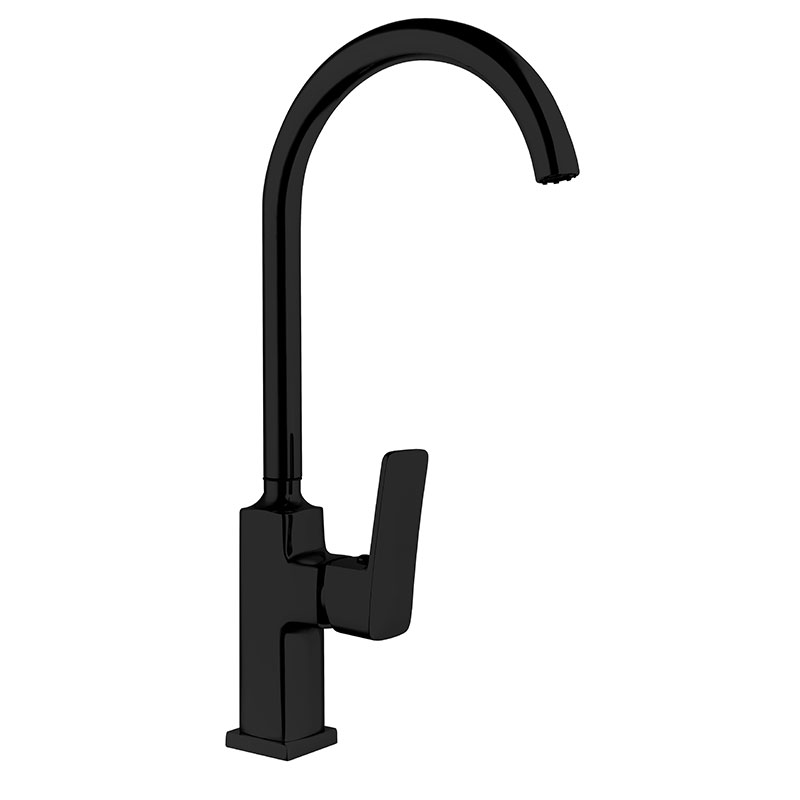 Смеситель для кухни с высоким поворотным R-изливом 22,5 см без гибкой подводки с поворотным аэратором 15 градусов в черном матовом покрытии, нанесенном методом гальванизации, что увеличивает его долговечность.