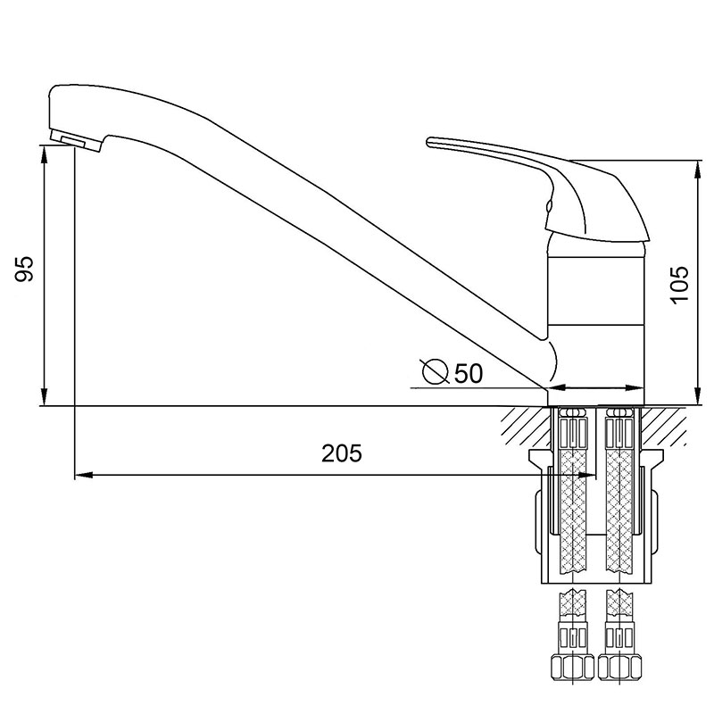 Смеситель для кухни Melodia Jive излив 25см, без гибкой подводки, хром (MDV35410)