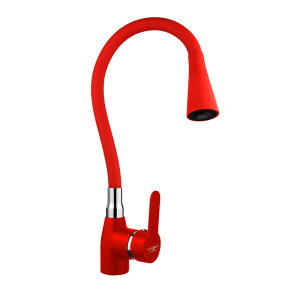 Смеситель для кухни Melodia Ostessa гибкий излив колокольчик 2 режима, красный (MDV40617Red)