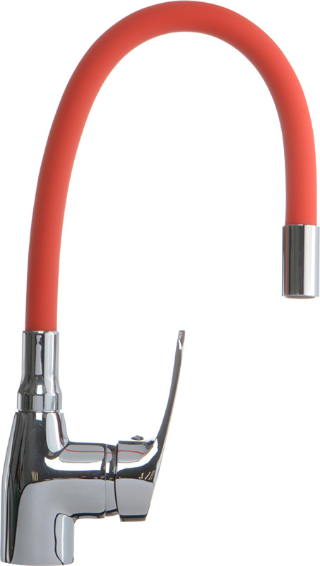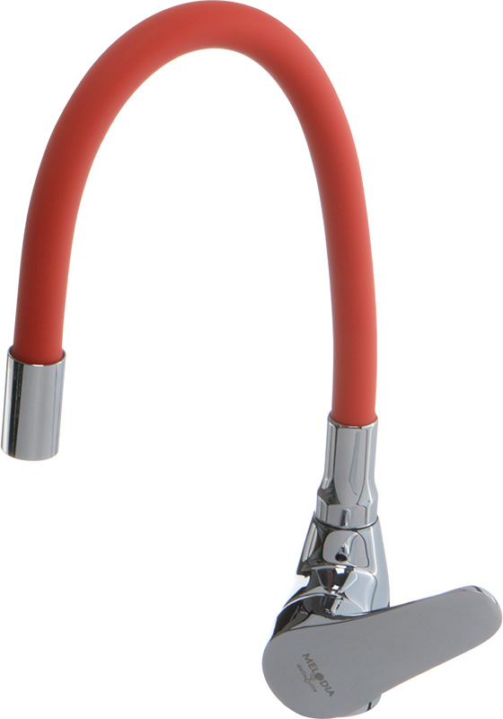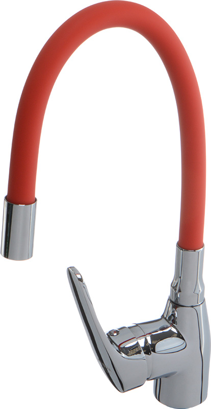 Смеситель для кухни MELODIA Ostessa с красным гибким изливом MDV 40615Red изготавливается в России. Надежный латунный корпус, гибкий силиконовый излив красного цвета, керамический картридж 40мм, без гибкой подводки в комплекте.