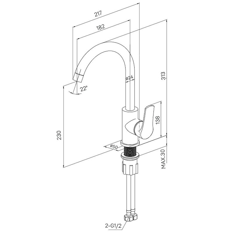 Смеситель для кухни, однозахватный, латунь, PVD покрытие, цвет - сатин, керамический картридж 35 мм, пластиковый аэратор. В комлекте: гибкая подводка, крепёж. Упаковка: коробка, микрогофрокартон, индивид. мешок.