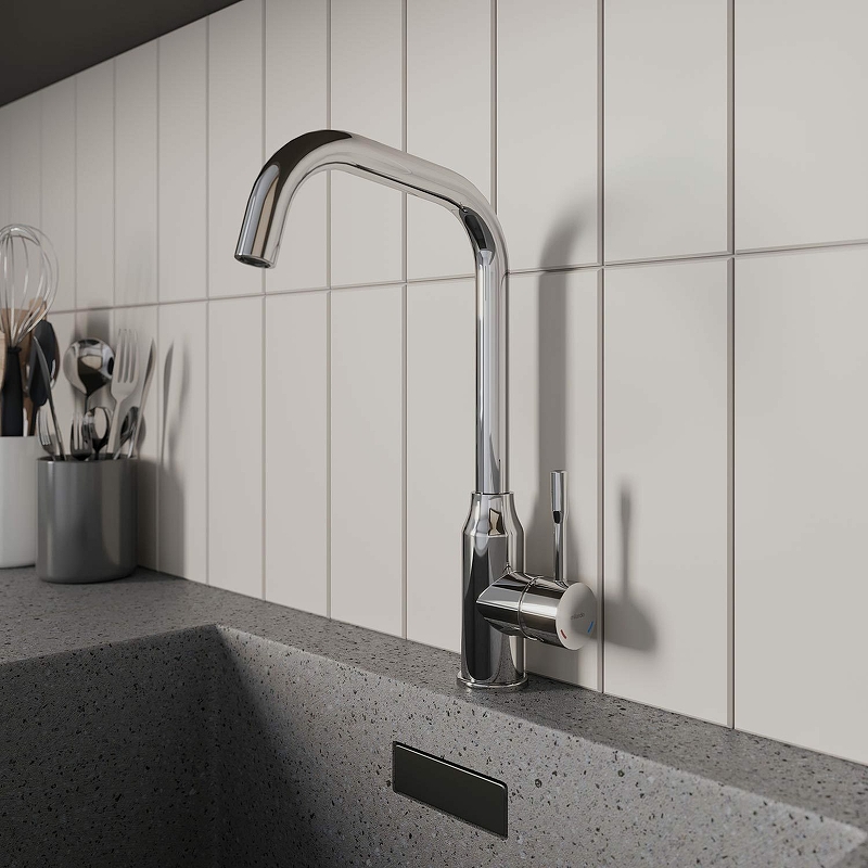 Смеситель для кухни, однозахватный, латунь, никель-хромовое покрытие, керамический картридж 35 мм, пластиковый аэратор. В комлекте: гибкая подводка, крепёж. Упаковка: коробка, микрогофрокартон, индивид. мешок