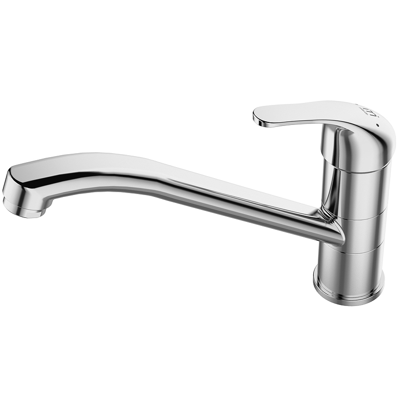 Смеситель для кухни, однозахватный, латунь, никель-хромовое покрытие, цвет - хром, керамический картридж 35 мм, пластиковый аэратор. В комлекте: гибкая подводка, крепёж. Упаковка: коробка, микрогофрокартон, индивид. мешок.