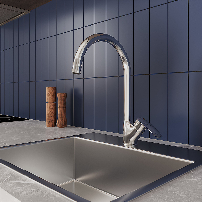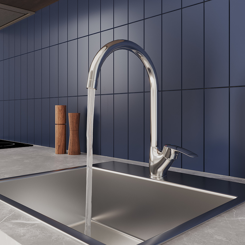 Смеситель для кухни, однозахватный, латунь, никель-хромовое покрытие, керамический картридж 35 мм, пластиковый аэратор. В комлекте: гибкая подводка, крепёж. Упаковка: коробка, микрогофрокартон, индивид. мешок.