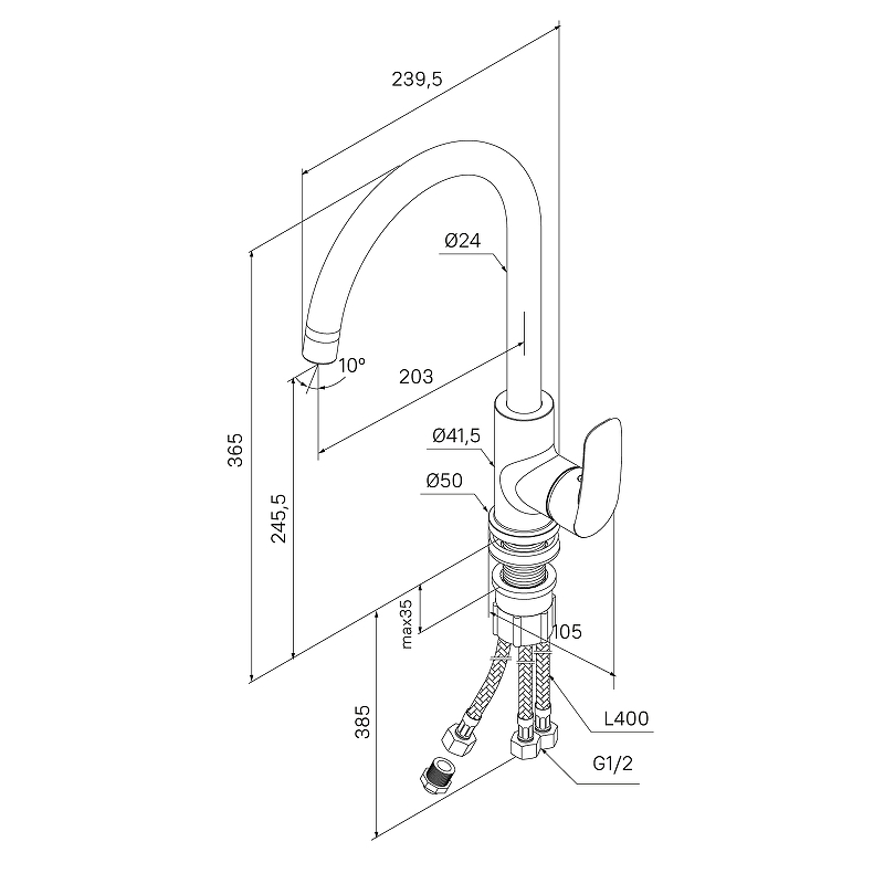 Смеситель для кухни с каналом для фильтрованной воды, однозахватный, латунь, черный матовый, керамический картридж 35 мм с функцией подачи фильтрованной воды, двухканальный пластиковый аэратор Neoperl М24 с дополнительным каналом для питьевой воды. Смеситель управляется с использованием только одной ручки. Подача фильтрованной воды осуществляется при повороте ручки в закрытом состоянии. В комплекте: гибкая подводка, крепеж. Упаковка: картонная коробка, индивид мешок.