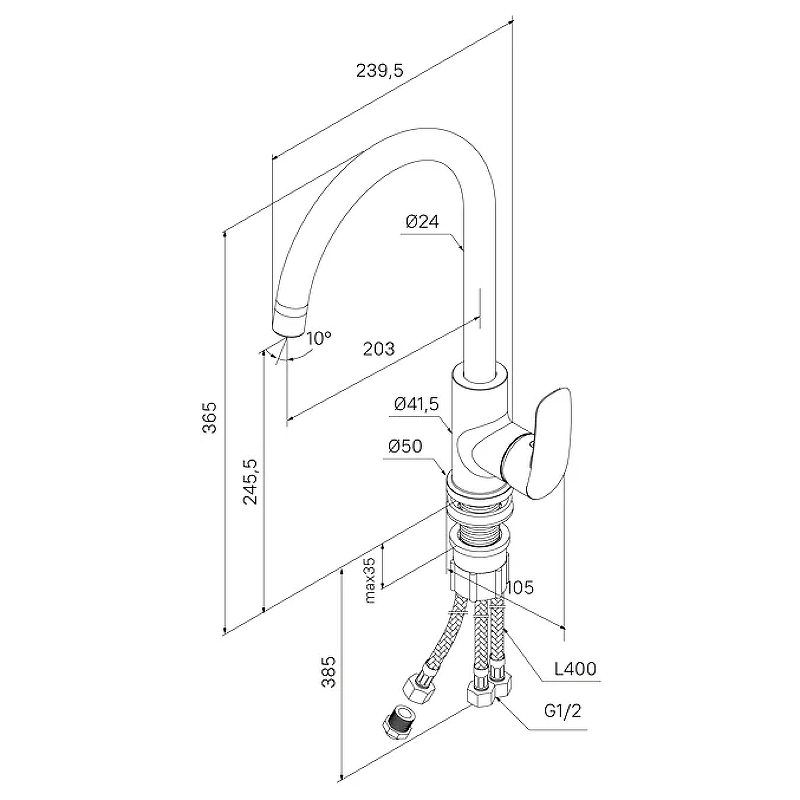 Смеситель для кухни с каналом для фильтрованной воды, однозахватный, латунь, никель-хромовое покрытие, керамический картридж 35 мм с функцией подачи фильтрованной воды, двухканальный пластиковый аэратор Neoperl М24 с дополнительным каналом для питьевой воды. Смеситель управляется с использованием только одной ручки. Подача фильтрованной воды осуществляется при повороте ручки в закрытом состоянии. В комплекте: гибкая подводка, крепеж. Упаковка: картонная коробка, индивид мешок.