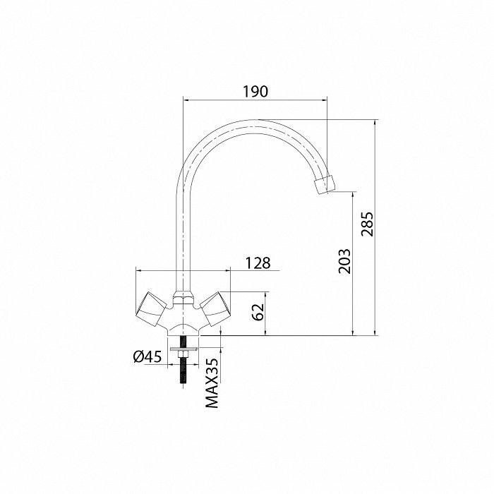 Смеситель для кухни, двухзахватный, латунь,никель-хромовое покрытие, цвет - хром, керамические кранбуксы, пластиковый аэратор. В комлекте: гибкая подводка, крепёж. Упаковка: коробка, микрогофрокартон, индивид. мешок.