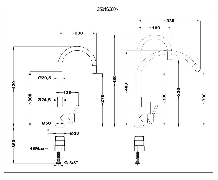 •Поворотный излив: 200 мм
