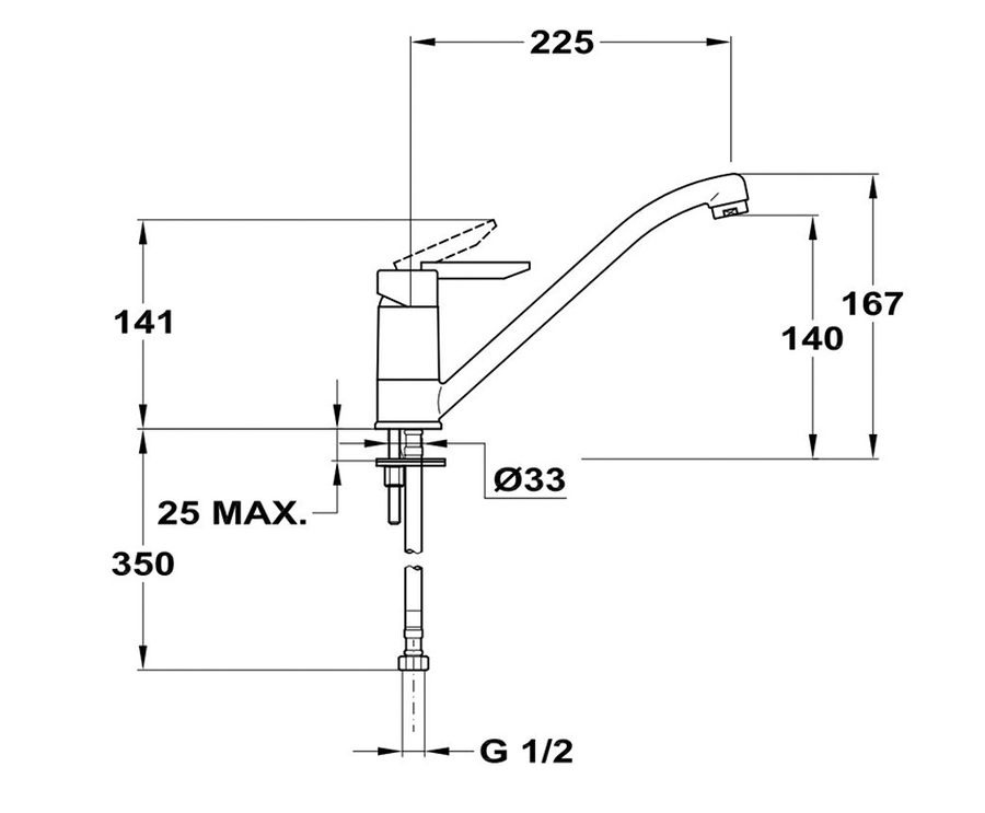 С поворотным изливо 225 мм.