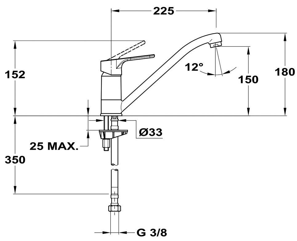 Смеситель для кухонной мойки с поворотным изливом 225 мм., модель выполнена из экологически чистых материалов (высококачественной латуни), противошумовой аэратор