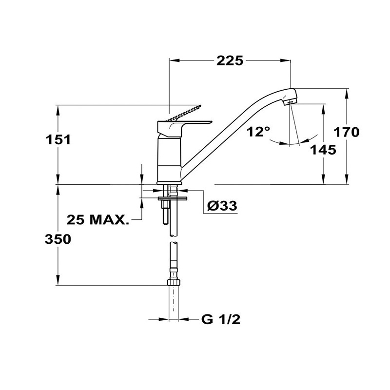 Смеситель для кухонной мойки с поворотным изливом 225 мм, модель с удобной ручкой, выполнена из экологически чистых материалов (высококачественной латуни), противошумовой аэратор сохранит тишину