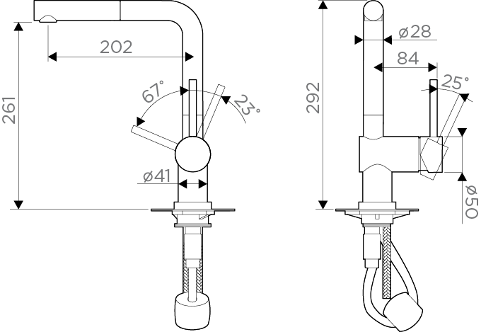 Cостав поставки: смеситель, гибкая подводка, аэратор, крепление