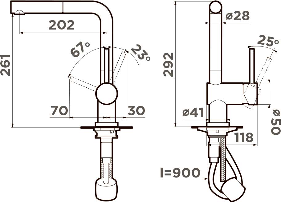 Вытяжной шланг до 900 мм
