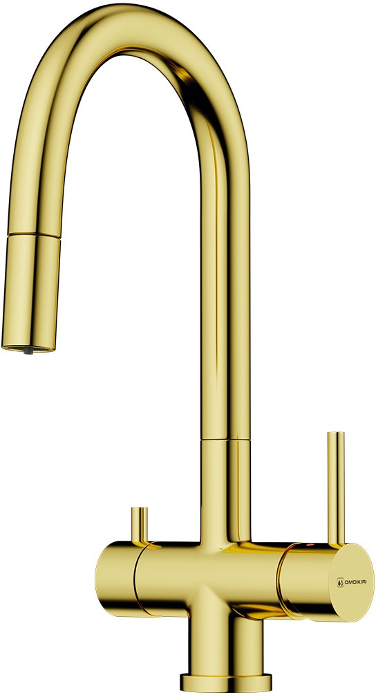 Смеситель для кухни Omoikiri Akita-S-LG с переключателем на фильтр, с выдвижным изливом светлое золото (4994350)