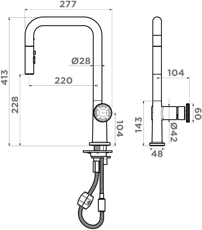 Смеситель для кухни Omoikiri Arita-SB-GB с выдвижным изливом графит (4994355)