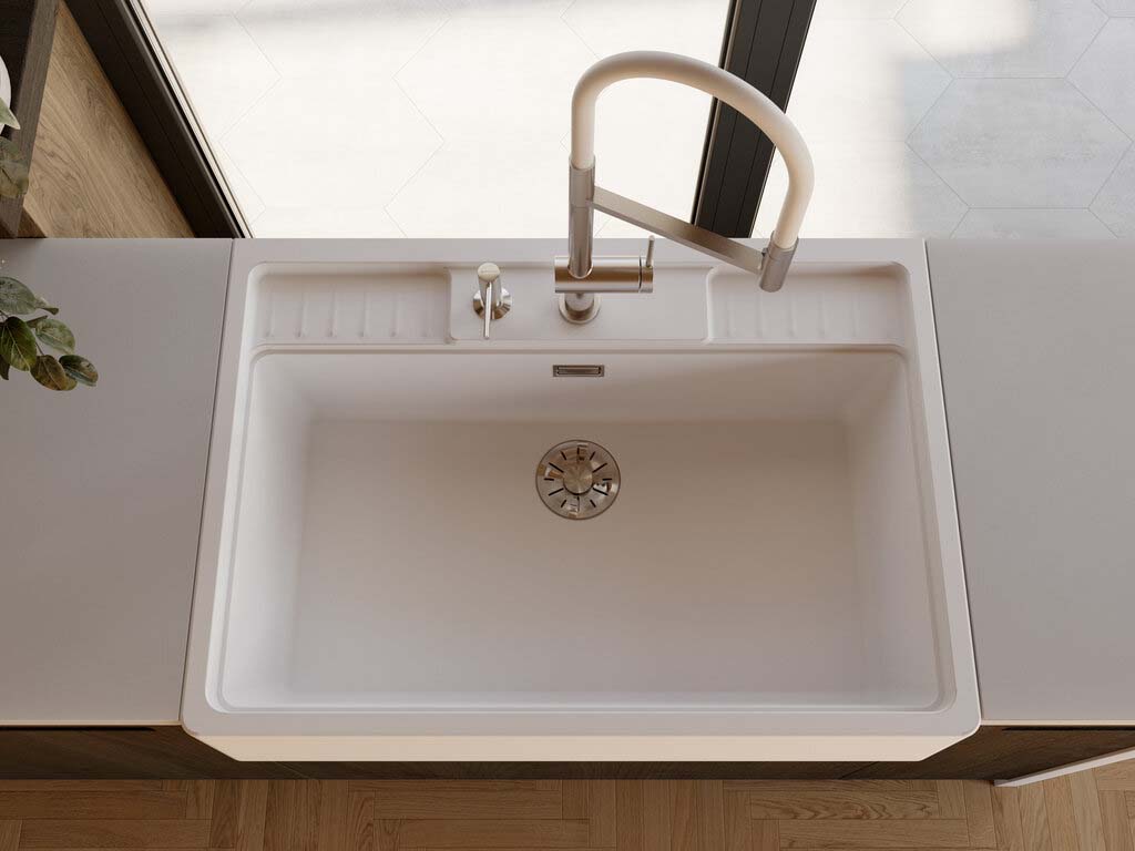 Смеситель для кухни Omoikiri Kanto-2 Plus-SB BN-WH с гибким изливом белый (4994450)