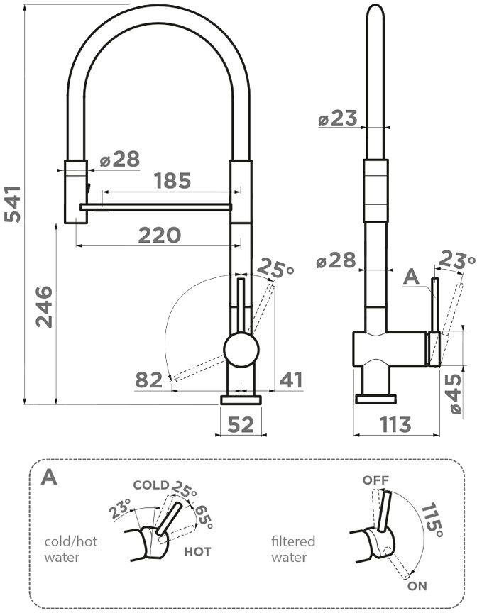 Подключение фильтра для очистки воды PURE LIFE, гибкий съемный шланг. Также модель дополнена функцией струя/душ, оснащена единым рычагом управления MULTI. Аэратор для фильтрованной воды теперь скрыт, что делает форму смесителя минималистичной.