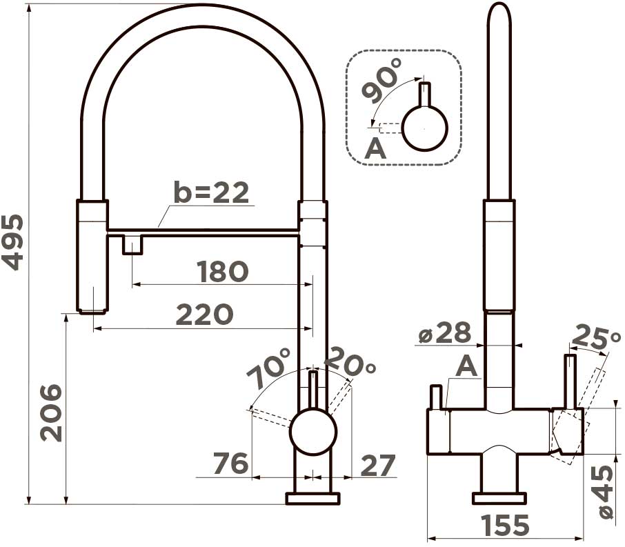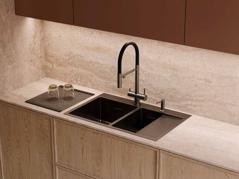 Смеситель для кухни Omoikiri Kanto-GM-BL с переключателем на фильтр, с выдвижным изливом вороненая сталь/черный (4994605)
