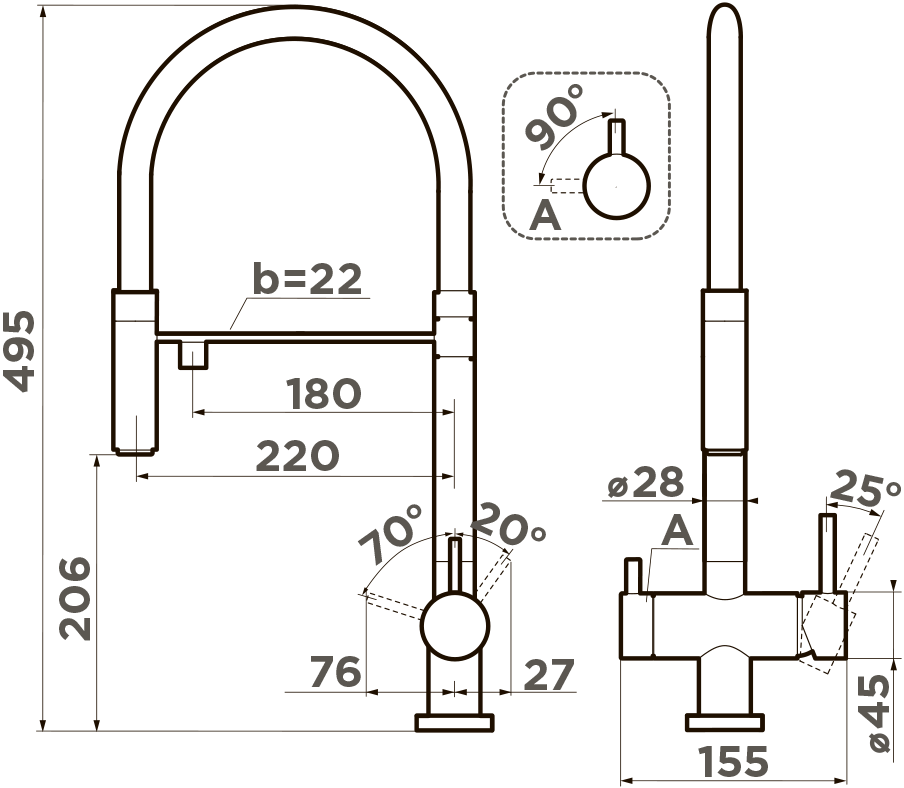 Смеситель для кухни Omoikiri Kanto-RG с переключателем на фильтр, с выдвижным изливом royal green (4994426)