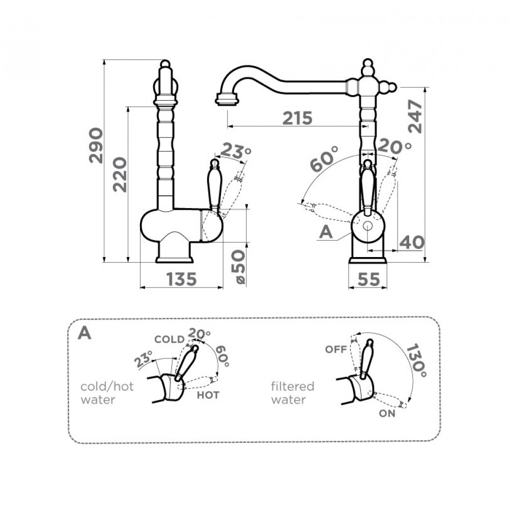 Классический дизайн и удобство использования, благодаря высокому изливу