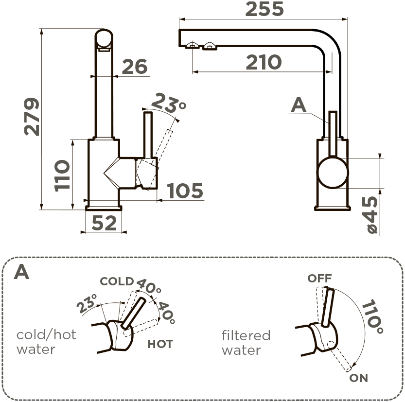Новая удобная технология системы ручки 3в1 позволяет переключить с водопроводной на фильтрованную в одно касание