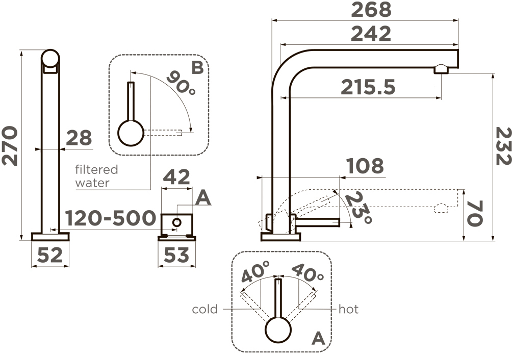 Multi - единый рычаг управления для горячей, холодной и питьевой воды