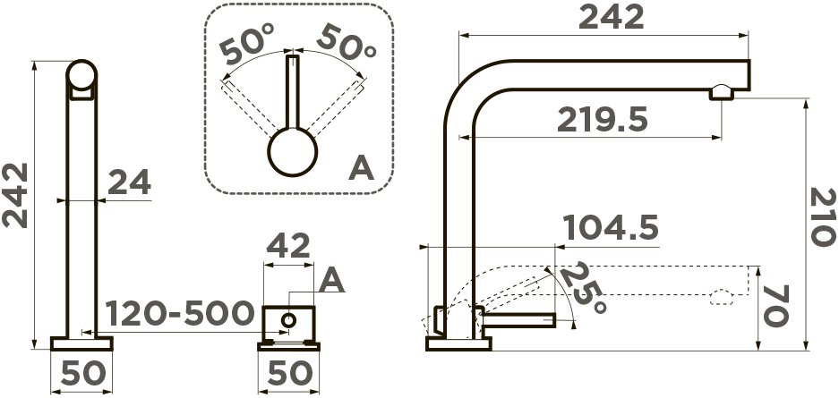 смеситель для установки под окно c высоким поворотным изливом
