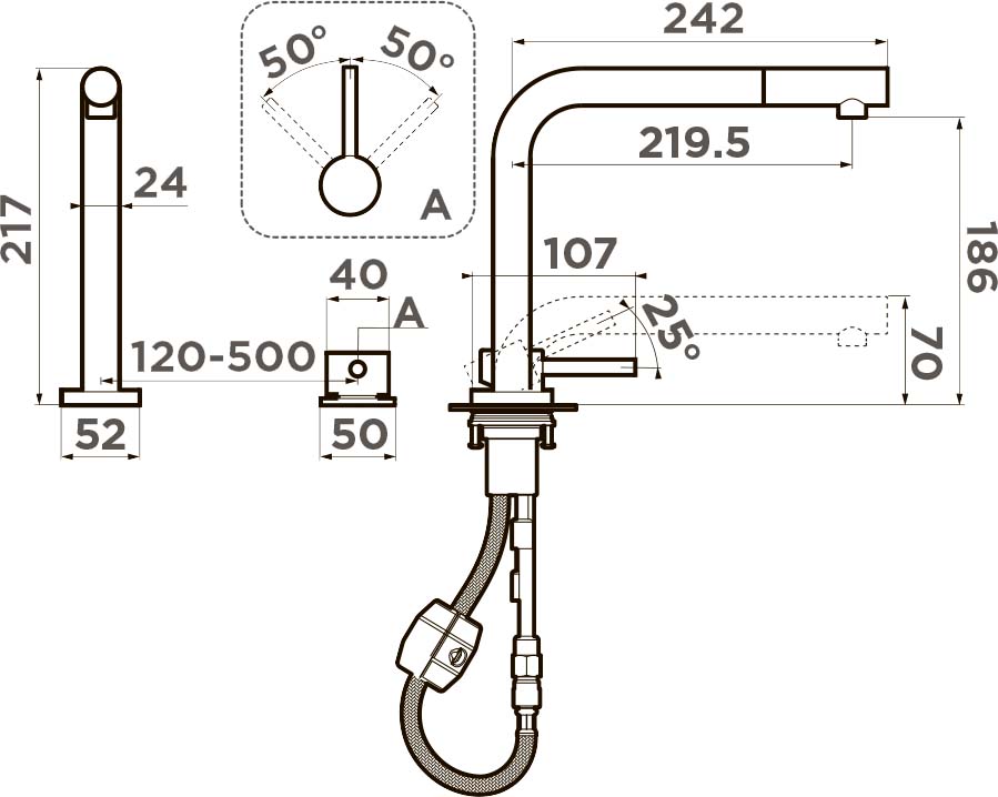 Смеситель для кухни Omoikiri Nara-S-LG с выдвижным изливом светлое золото (4994485)