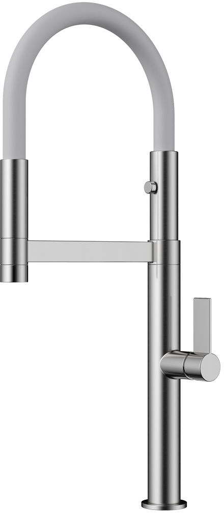 Длина высокого поворотного излива увеличивается по желанию за счёт шланга на магните.
