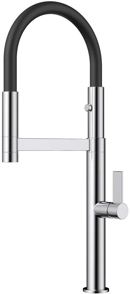 Длина высокого поворотного излива увеличивается по желанию за счёт шланга на магните.