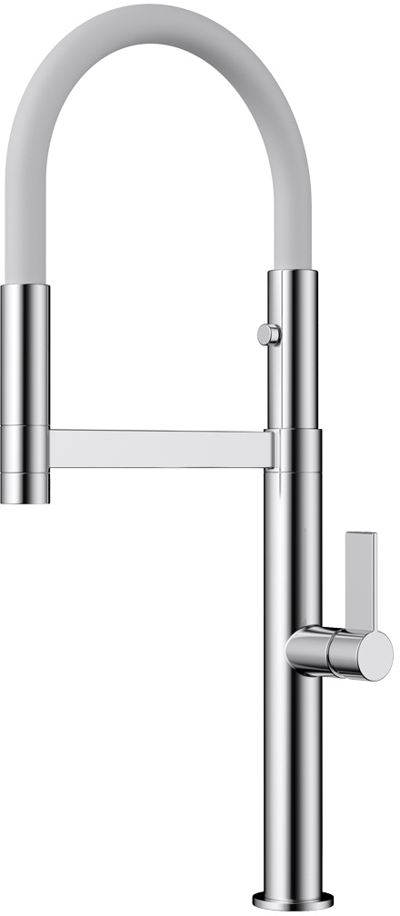 Длина высокого поворотного излива увеличивается по желанию за счёт шланга на магните.