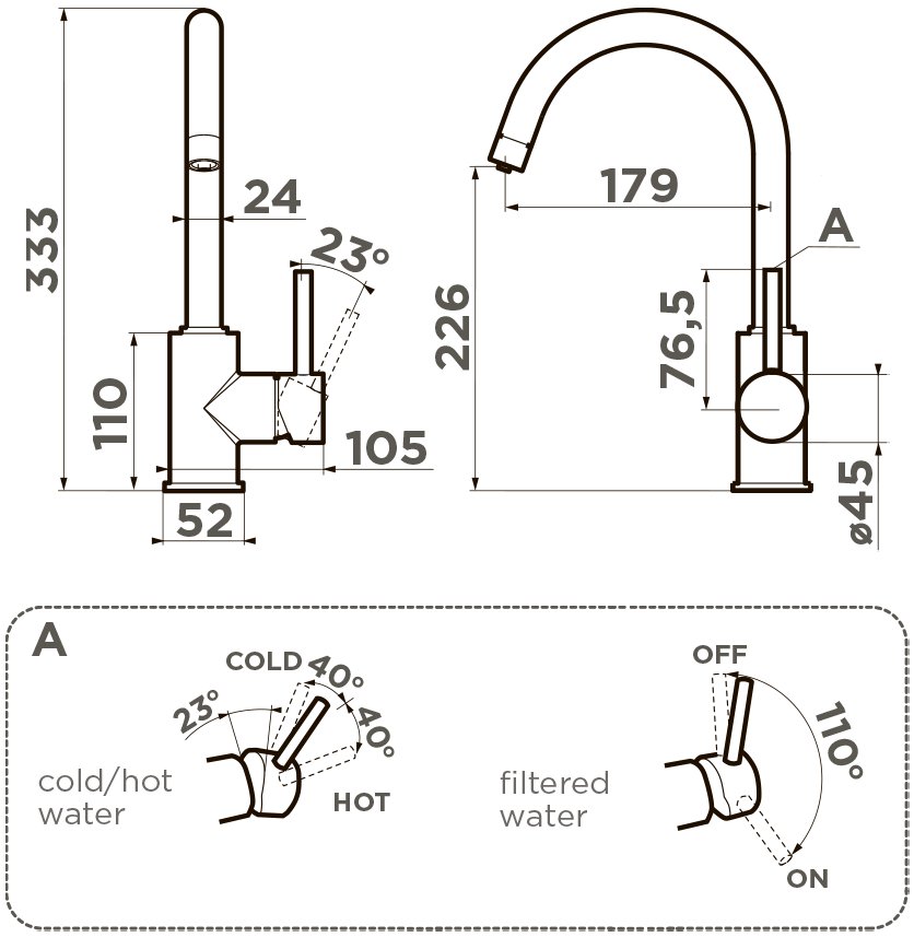 Новая удобная технология системы ручки 3в1 позволяет переключить с водопроводной на фильтрованную в одно касание
