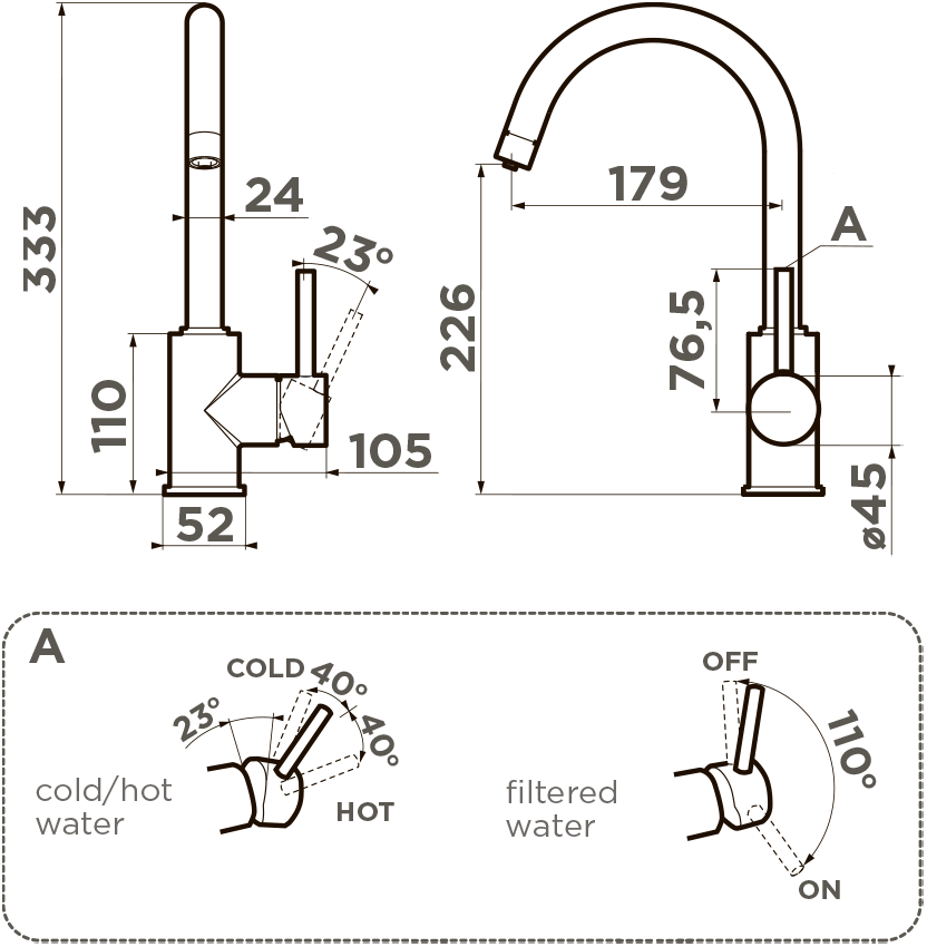 Новая удобная технология системы ручки 3в1 позволяет переключить с водопроводной на фильтрованную в одно касание