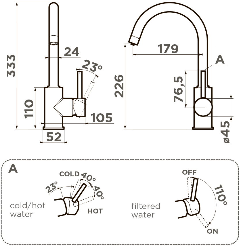 Новая удобная технология системы ручки 3в1 позволяет переключить с водопроводной на фильтрованную в одно касание