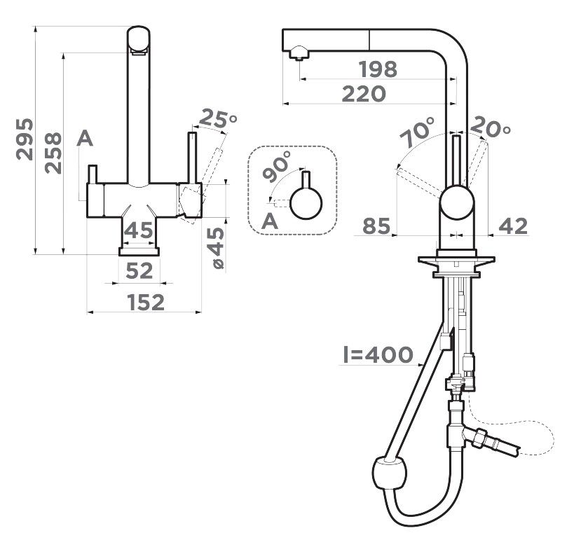 Смеситель однорычажный с дополнительным краном для питьевой воды и выдвижным изливом Takamatsu-S BN цвет хром (4994346)
